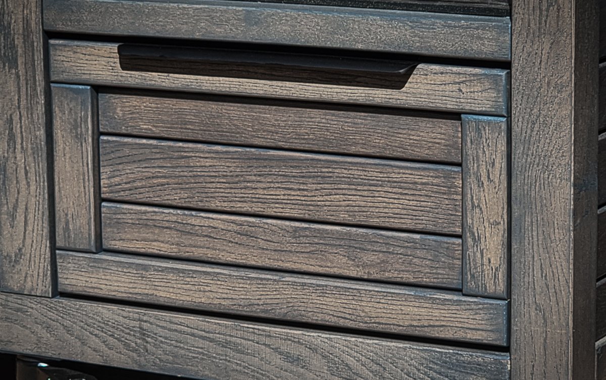 Stalo karkasas bei fasadai – Tai natūralaus ąžuolo masyvas, atliktas medienos sendinimo/ryškinimo procesas, po kurio mediena tampa išraiškingesnė, labiau įgeria aliejų, ko pasekoje geriau atstumiama drėgmė bei ilgėja tarnavimo laikas. Mediena specialiu metodu padengta itin aukštos kokybės „Rubio Monocoat“ ekologiška medžio alyva (Belgija).