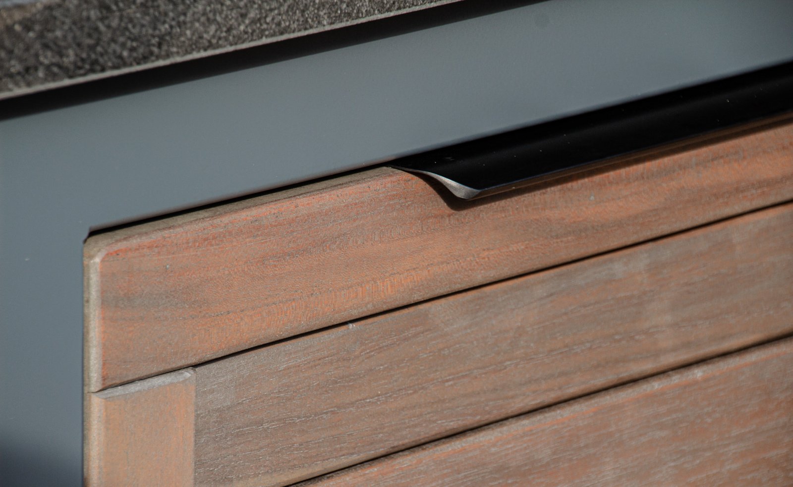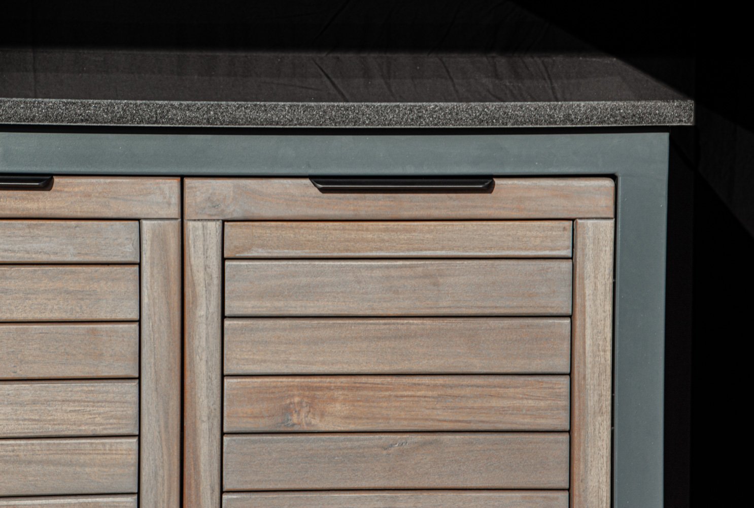 Stalviršis – HPL Compact 12mm (juodu užpildu) arba Tamsus granitas.