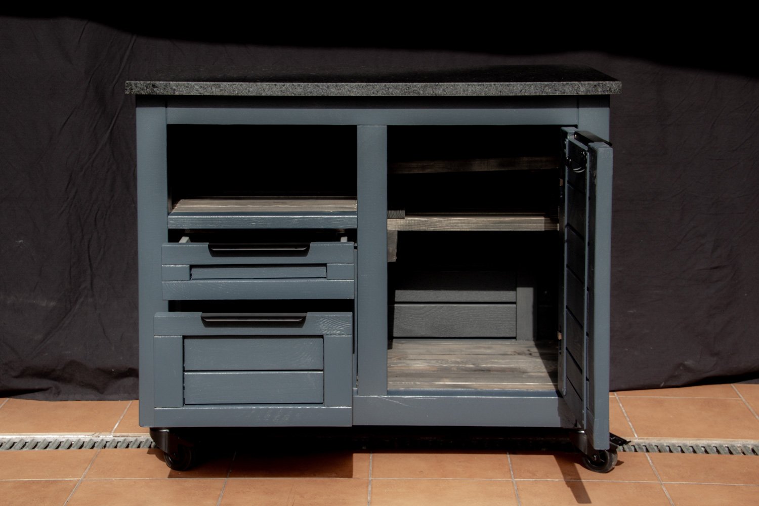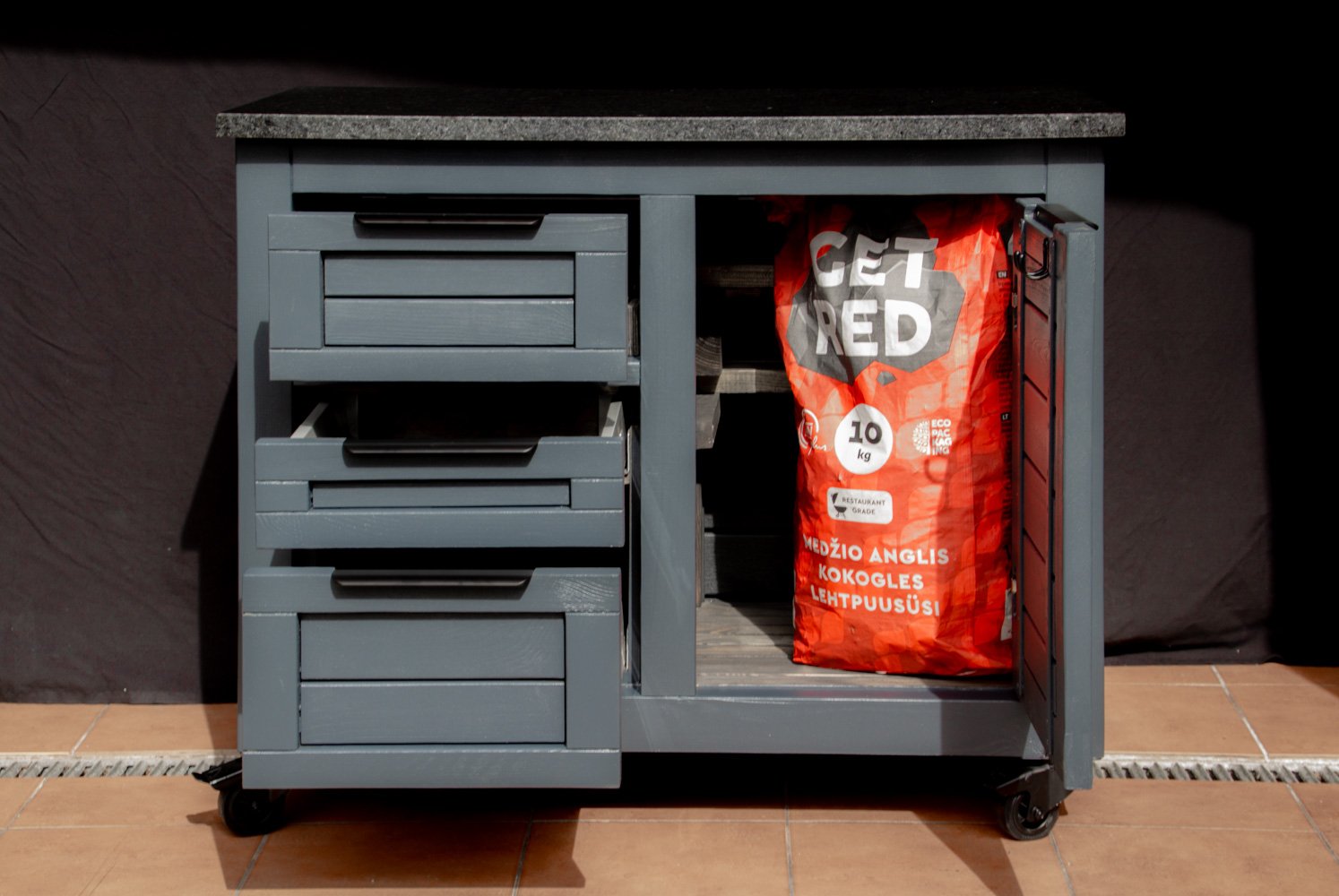 Natūralios medienos terasoms skirtas baldas įprastai statomas greta Kamado ar dujinio griliaus, kuomet grilius laikomas originaliame stove. Arba stalviršyje gali būti pjaunama skylė ir į stalviršį įleidžiamas MINI dydžio Kamado grilius.